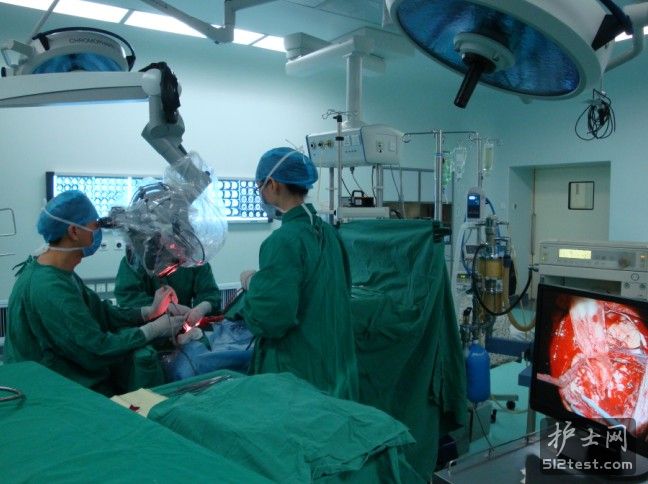 看显示器内容、左下角应该是蛇形拉钩,还有脑棉片,还有主刀医生的搭手台,多么熟悉的脑外手术工作环境,应该感谢版主!目前我们与麻醉区域划分做得不是很好,你们将布悬吊夹起来明显划分,还有我们的器械台置于器械护士的右侧,你们置于左侧,这是可以让我思考与借鉴的方法,谢谢!